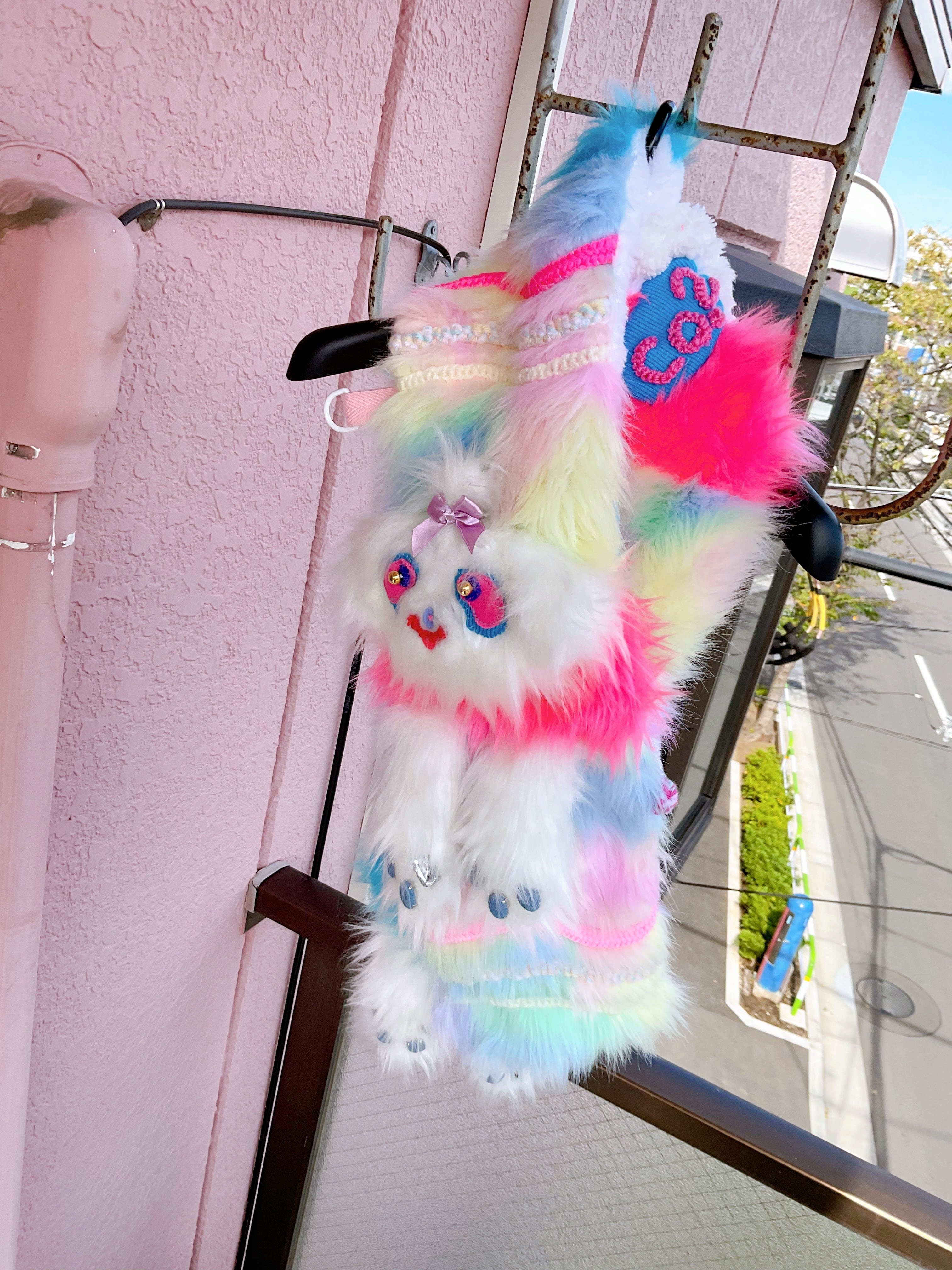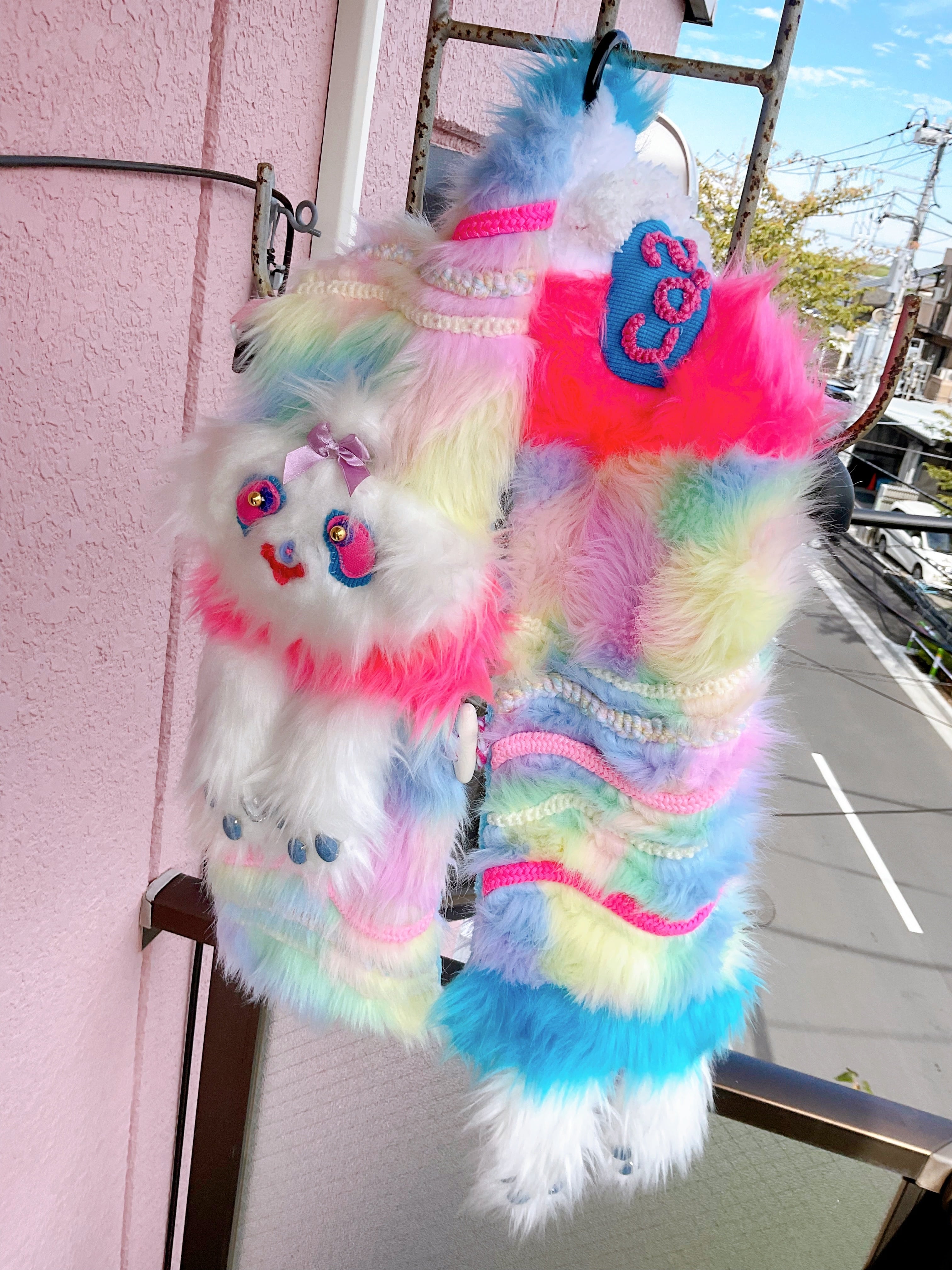 ファーとボアと毛糸の素材感でマルチーズのふわふわ毛並み、